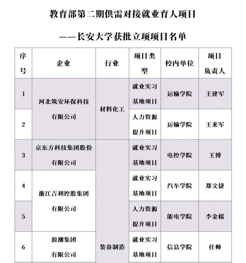 近日,教育部发布了《关于公布第二期供需对接就业育人项目立项名单的通知》(教学司函[2023]6号),公布了第二期供需对接就业育人项目立项名单。经高校申请、用人单位申报、专家审核、立项单位信息核查等环节,SUNBET申搏官方网站与浙江吉利控股集团有限公司合作的1项人力资源提升项目获批立项。
