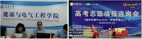 线下招生进行的同时,线上招生宣传顺利开展,学院招生专员姚秋霞副教授与陈占明副教授、崔军卫博士共同参加了由天津市教育招生考试院组织的为时90分钟的2023天津高校线上宣讲活动。在榆林举办的高考志愿填报咨询会上,姚秋霞招生专员受邀进行现场咨询采访的视频录制,结合申搏官网的整体情况和学院学科发展优势,对申搏官网办学情况、就业升学、特色专业、校园文化等情况进行了详细解读。