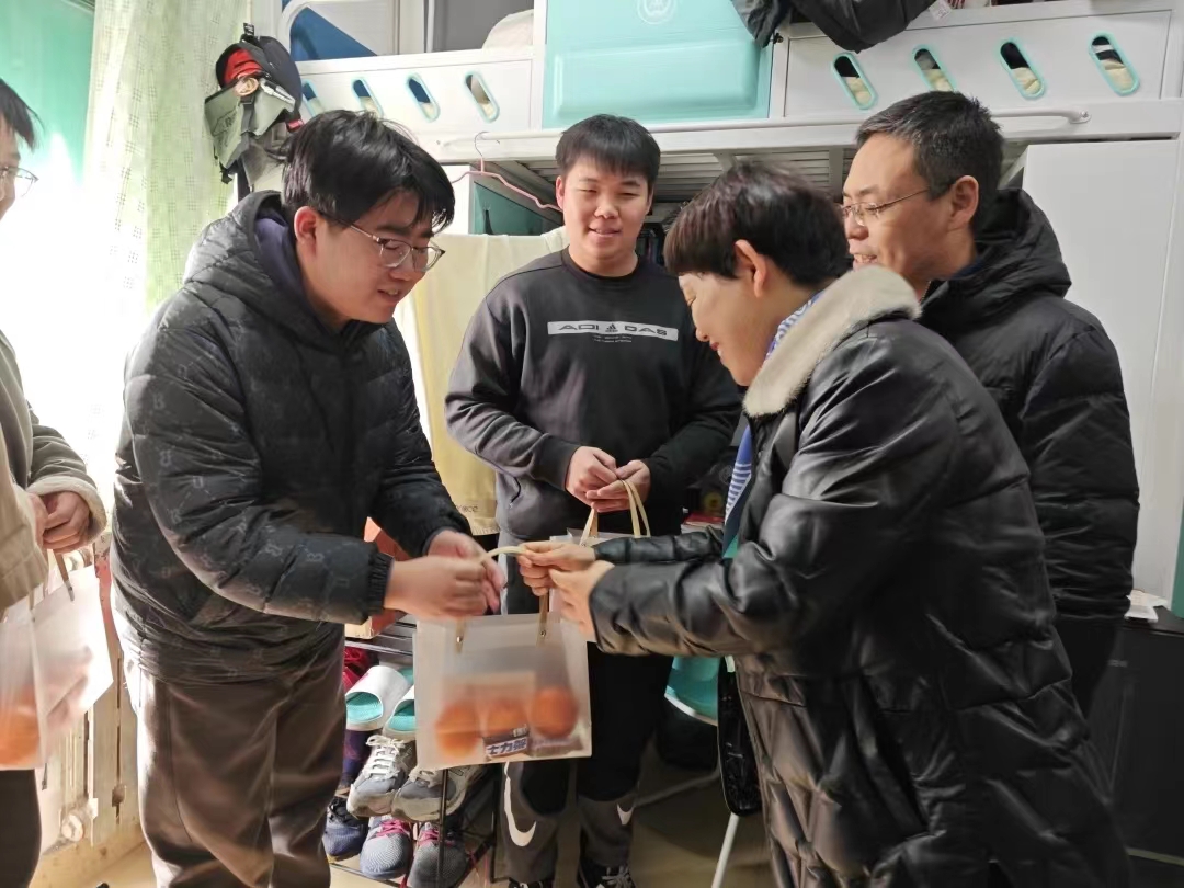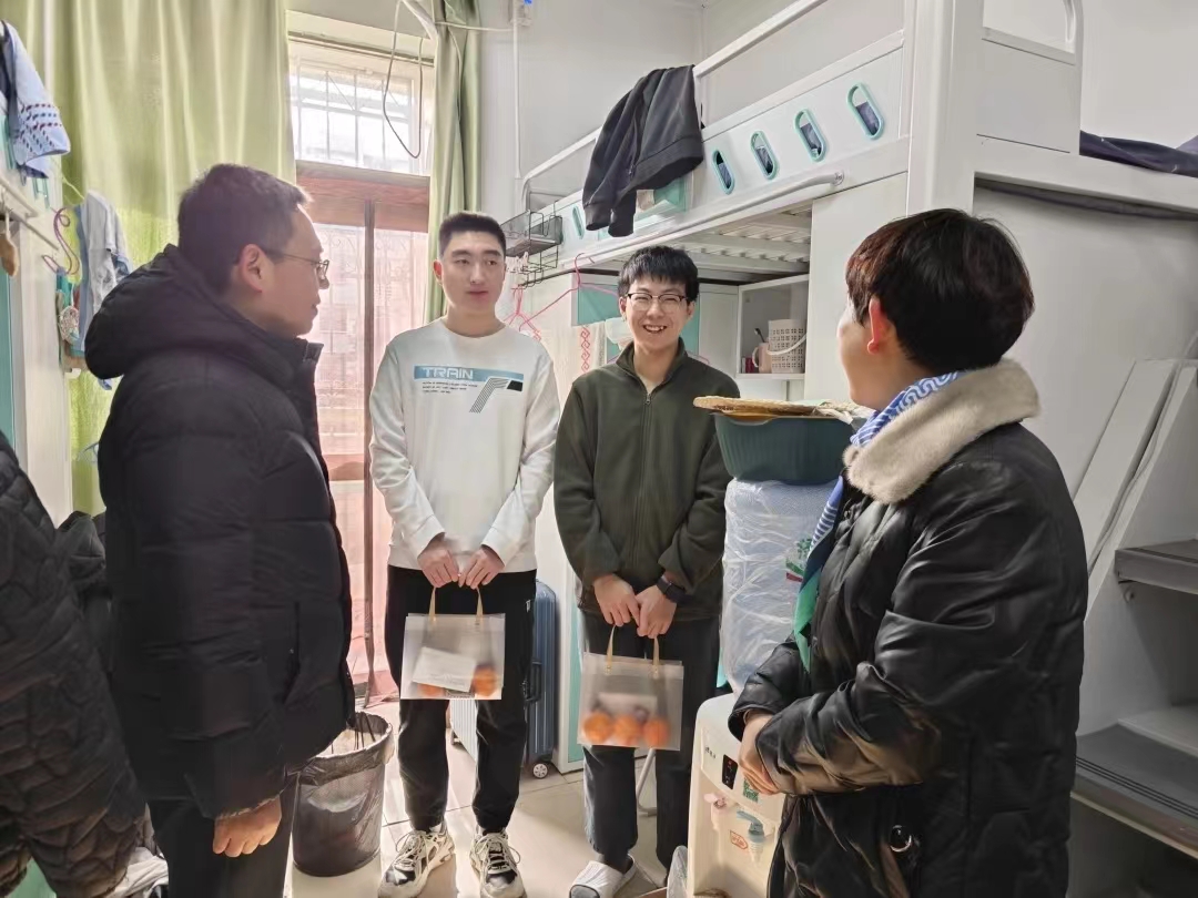 2024年全国硕士研究生招生考试在即,为帮助考生稳定考试心态、增强考试信心、缓解考试压力,12月22日,申搏官网党委书记姬国斌、党委副书记倪凤英、学生工作办公室主任李金檑、毕业班辅导员宿雨心深入学生宿舍,共同为考研学子送上了深切的关怀与温馨的慰问。