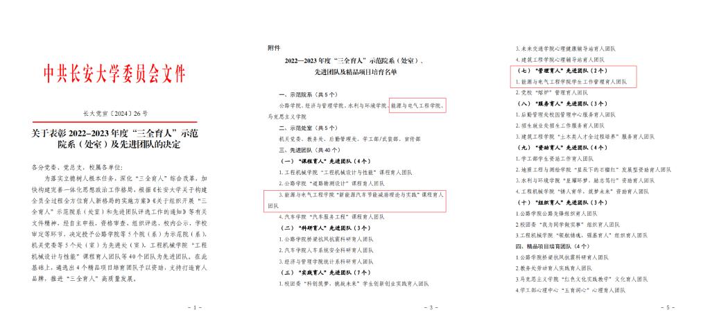 经自主申报、资格审查、组织评选、校内公示、学校审定等环节,SUNBET申搏官方网站荣获“三全育人”示范院系,学院“新能源汽车节能减排理论与实践”课程育人团队荣获“课程育人”先进团队,学院学生工作管理育人团队荣获“管理育人”先进团队。