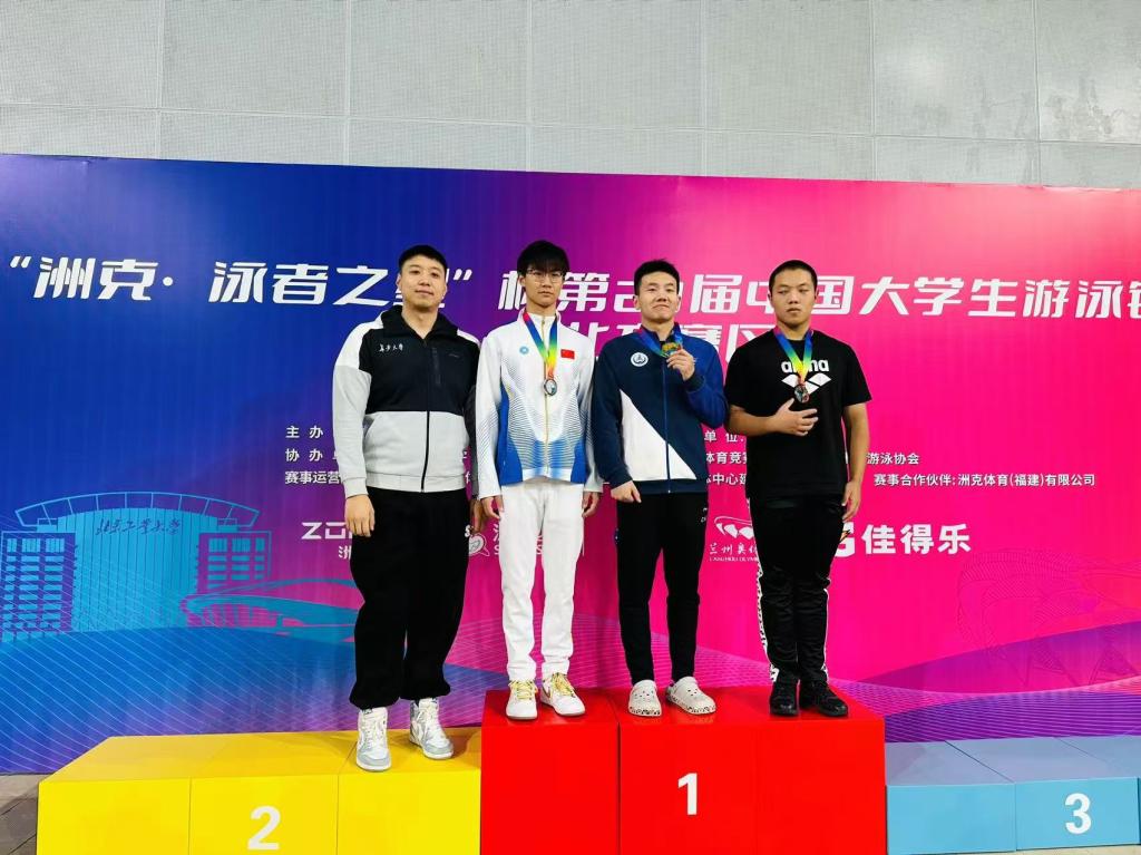 孙冰洋(右二)在第23届中国大学生游泳锦标赛(北方赛区)颁奖现场
