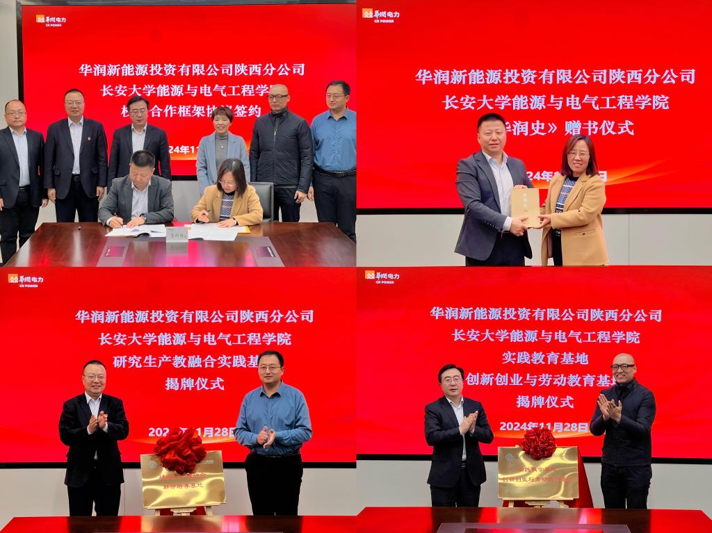 王艳和梁文亚代表校企双方签署了校企合作框架协议,双方其他相关负责人为“实践教学基地、创新创业与劳动教育基地”和“研究生产教融合实践基地”揭牌。梁文亚代表公司向学院赠予《华润史》图书。