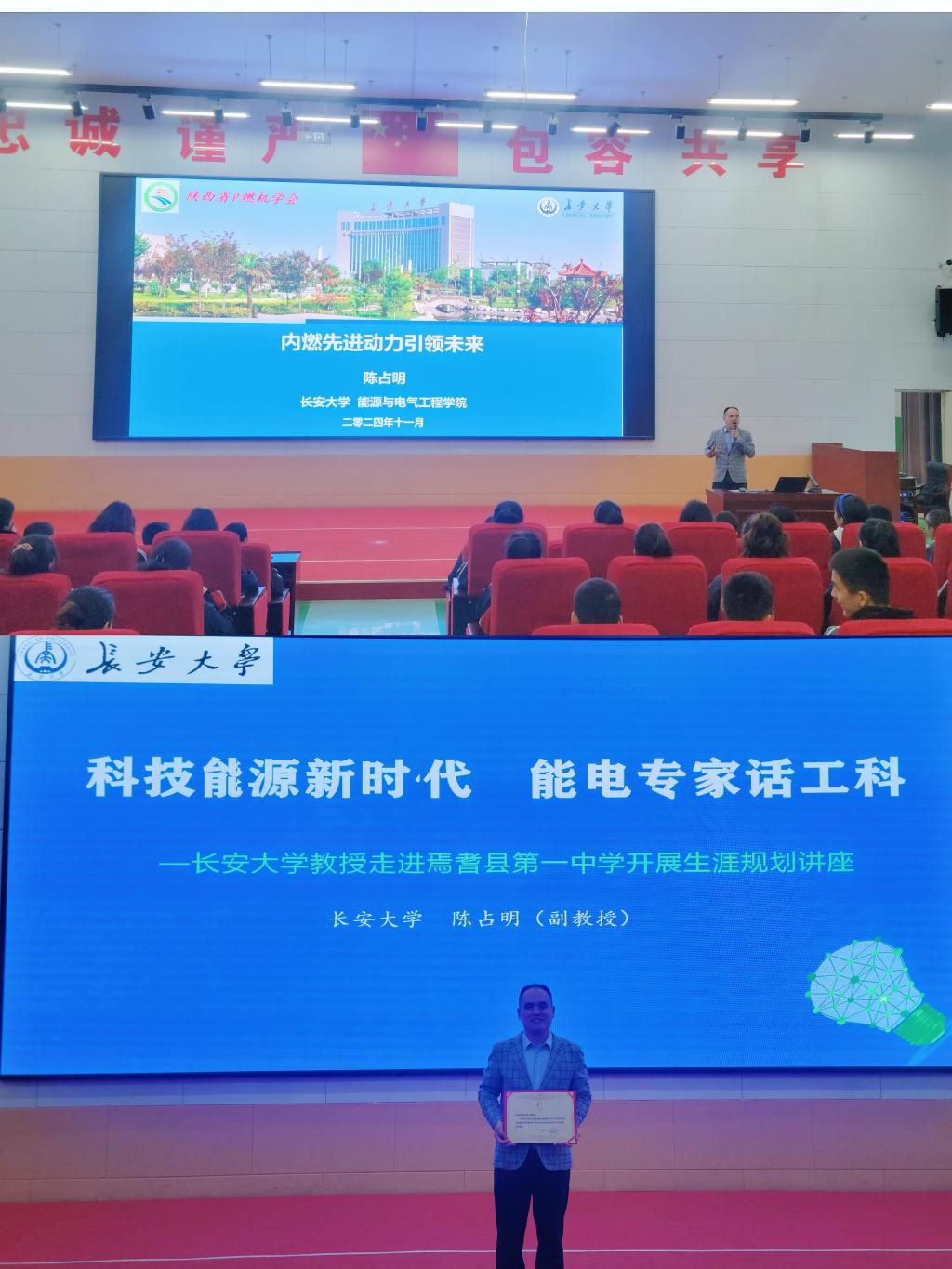2024年11月29日,申搏官网陈占明副教授赴新疆焉耆中学开展以“内燃先进动力引领未来”为主题的科普讲座。