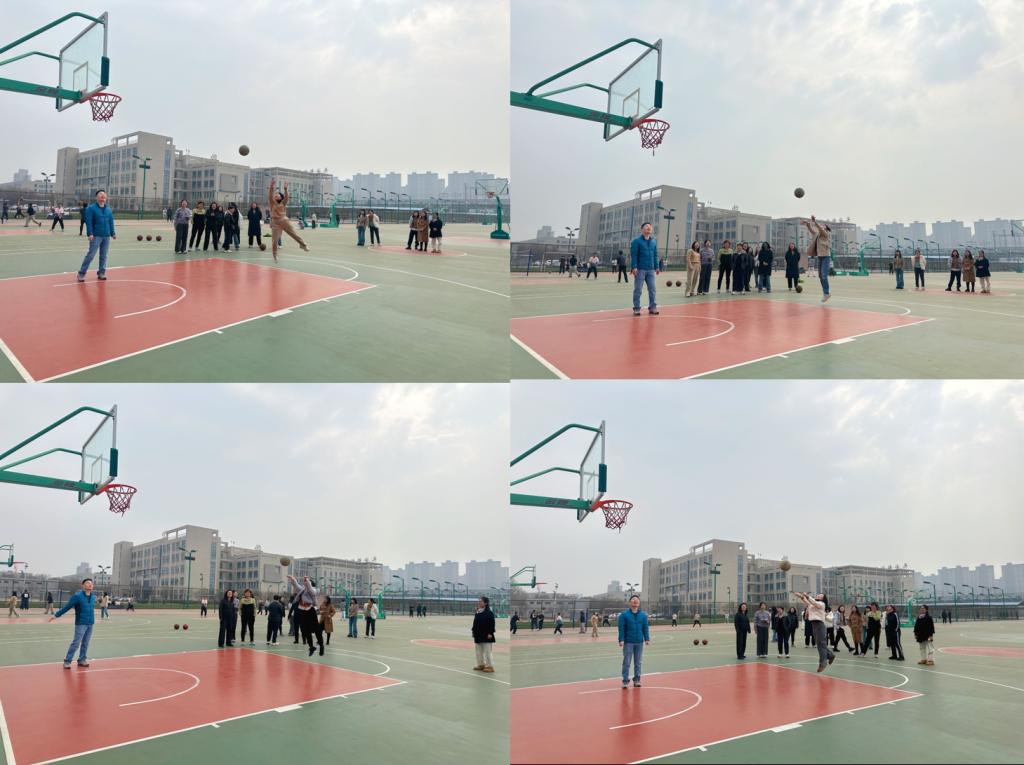 比赛开始前,参赛队员争分夺秒、紧锣密鼓地进行投篮练习。赛场上女教职工们站在投掷点,精神饱满,神情专注,动作行云流水、一气呵成。整场比赛活动中,掌声、笑声、加油声、欢呼声充盈了活动现场。