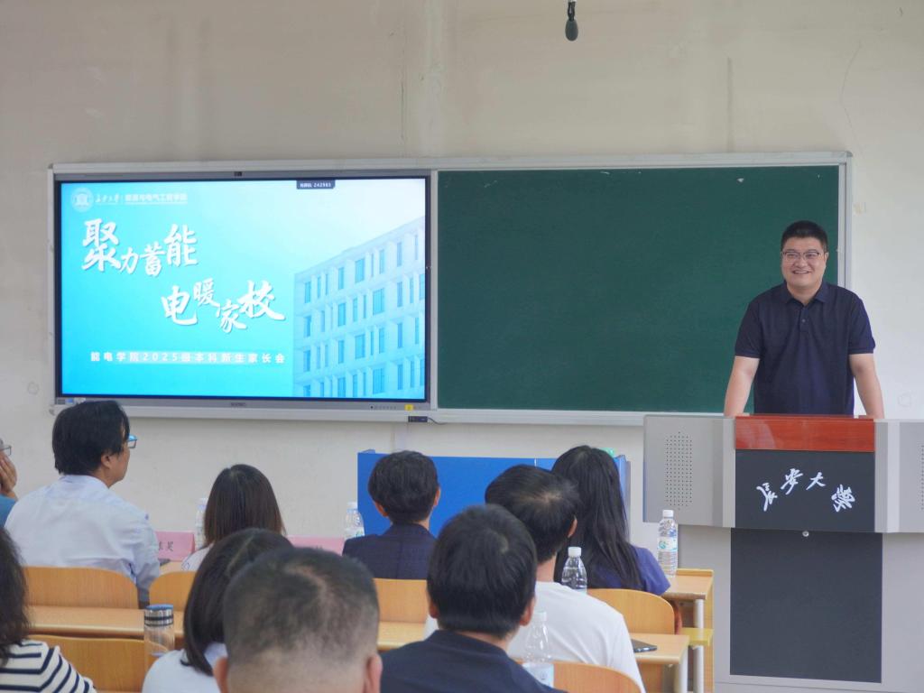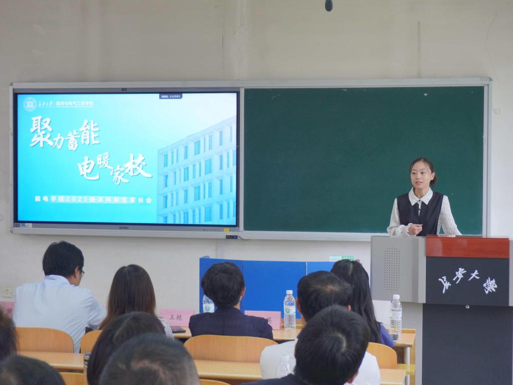 会上,陈昊首先代表学院向2025级能电新生致以热烈祝贺,向各位家长致以诚挚欢迎。陈昊围绕学院概况、师资队伍、专业建设与教学成果、学科研究方向等作了系统介绍,着重介绍了动力工程及工程热物理学科、电气工程学科的研究内容、就业方向与发展潜力,让家长们对孩子未来的学习平台与职业发展路径有了更直观、清晰的认知。