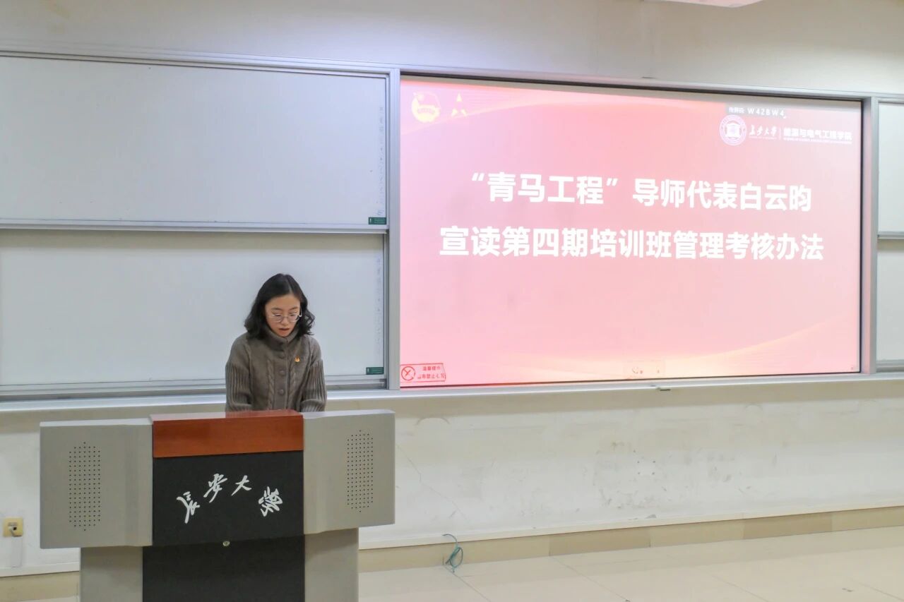 于晓虎宣读第四期培训班培养方案,“青马工程“导师代表白云昀宣读了第四期培训班管理考核办法。