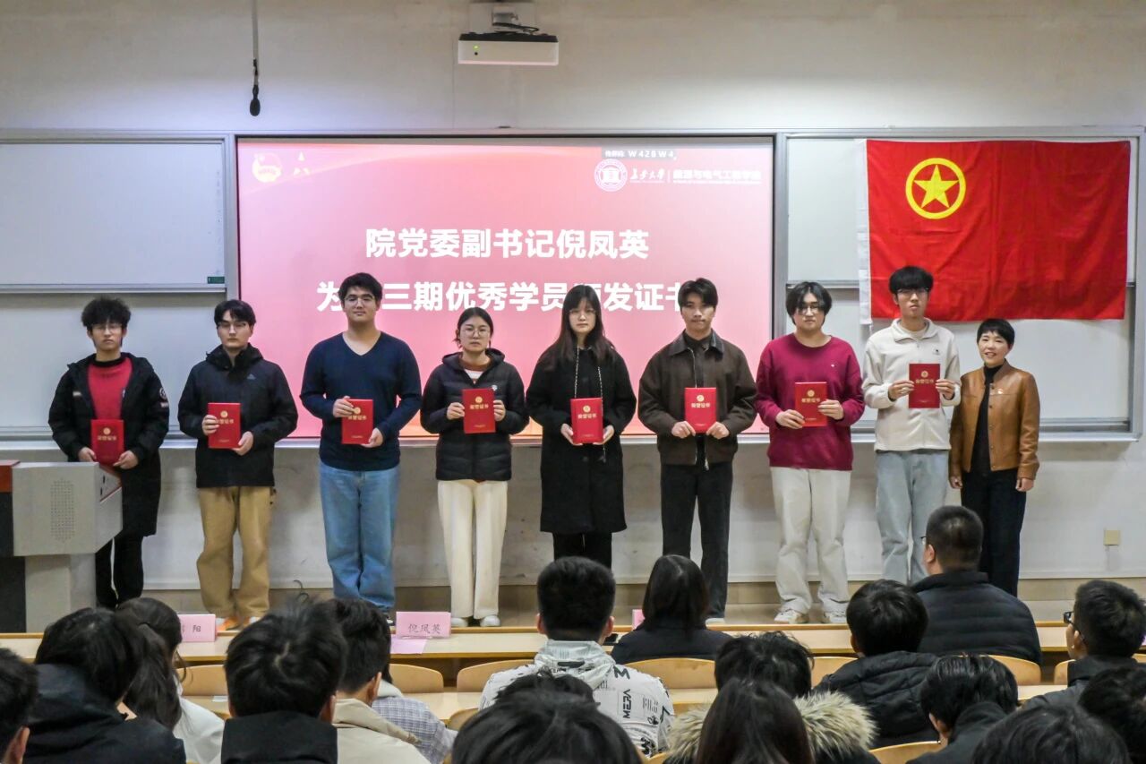 学生工作办公室副主任刘泽为“赋能”青年讲师团成员颁发聘书。