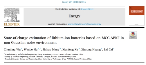 申搏官网电气工程及其自动化系巫春玲副教授以第一作者身份在能源领域顶级期刊《Energy》上发表了题目为《State-of-charge estimation of lithium-ion batteries based on MCC-AEKF in non-Gaussian noise environment》的学术论文,论文第一署名单位为长安大学。
