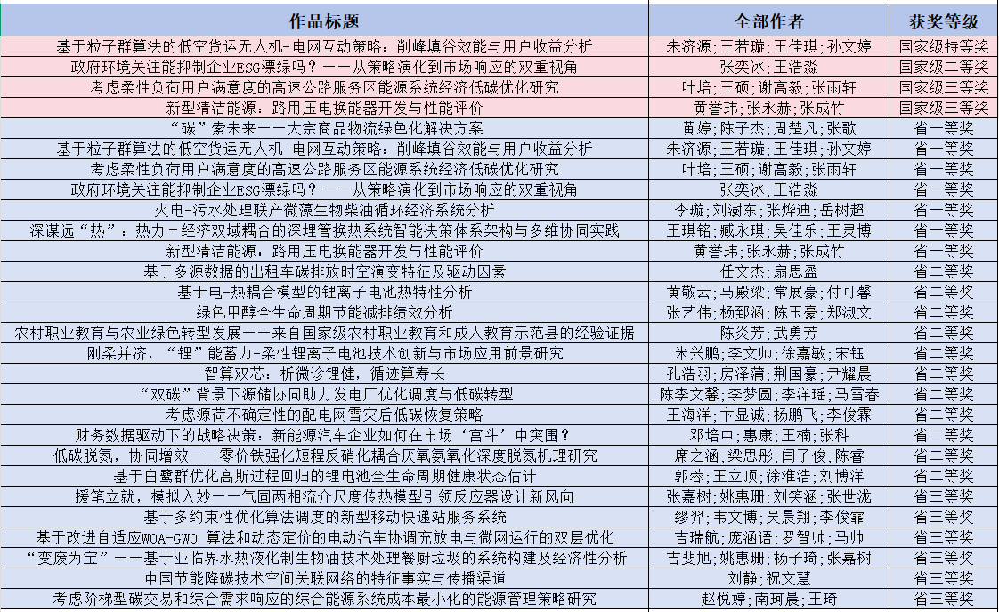 近日,第十一届全国大学生能源经济学术创意大赛圆满落幕。本届赛事共有全国724所高校16104件作品参赛,申搏官网通过宣传报名和举办校级选拔赛共推荐29份作品参加省赛,其中7项作品晋级国赛,最终斩获国家级特等奖1项,二等奖1项,三等奖2项;获省级一等奖7项、二等奖9项、三等奖8项。