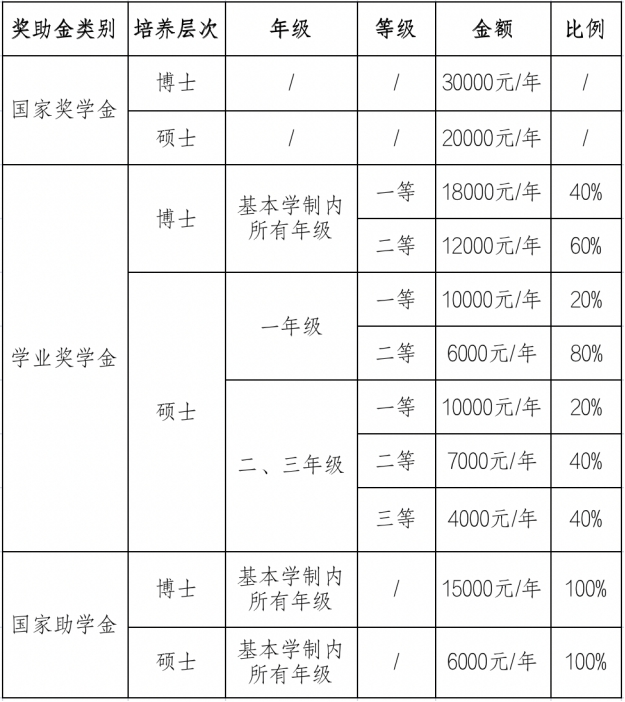 参照《长安大学研究生奖助体系实施办法》《长安大学研究生国家奖学金管理办法》《长安大学研究生学业奖学金管理办法》《长安大学SUNBET申搏官方网站研究生奖学金评选实施办法(修订)》等文件执行。奖助政策覆盖学制内所有年级,所有学生。