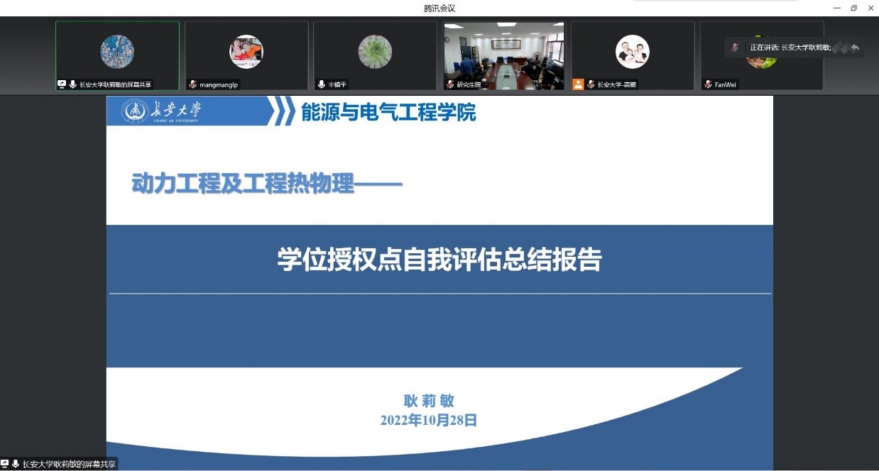能源与动力工程系耿莉敏副教授,从学位授权点基本情况、自我评估工作开展情况和持续改进计划三个方面对本学位点的情况做了详细汇报。