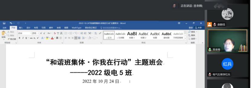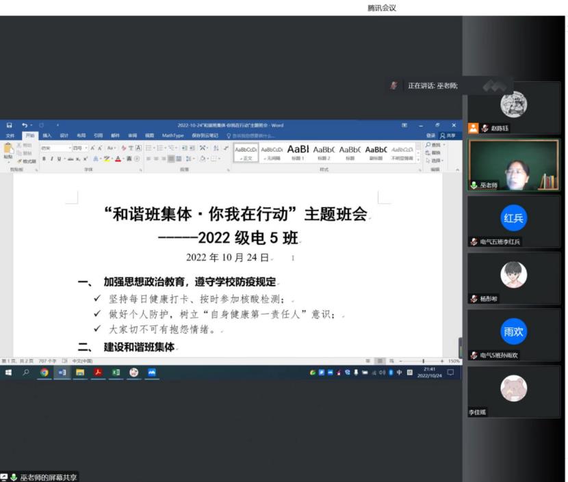 10月24日晚上,SUNBET申搏官方网站2022380305班线上召开“和谐班集体·你我在行动”主题班会·,班主任巫春玲以及全体同学参会。