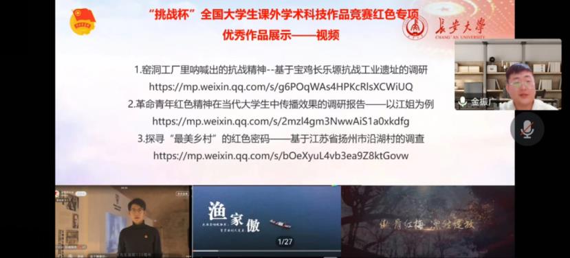 接着,十七届“挑战杯”红色专项获奖同学李冀初分享了心得体会。他从比赛介绍、选题方向、脚本撰写、视频制作、报告撰写等五个方面向同学们分享了宝贵经验,同时也展示出其获奖作品供同学们借鉴。除此之外,对于“挑战杯”李冀初提出了自己的建议,鼓励同学们积极参与“挑战杯”红色专项。