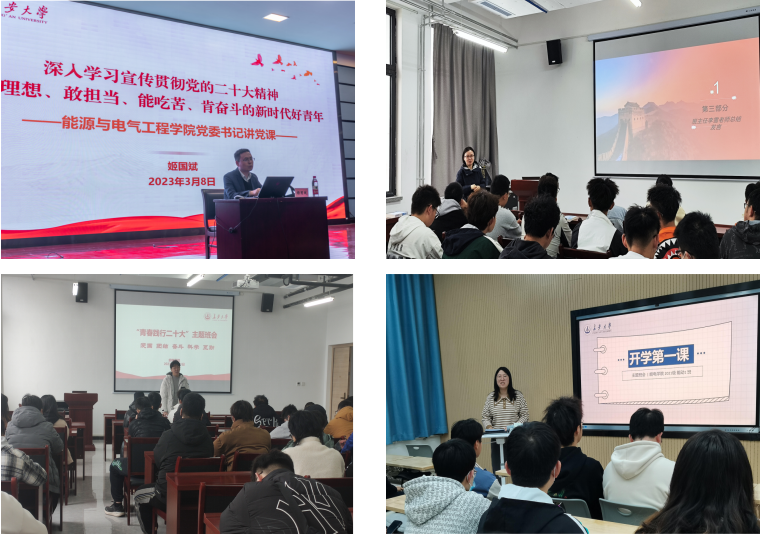 强化思想引领,为上好“开学第一课”添动力。以教育引导学生全面深入学习领会党的二十大精神为主线,院党委书记面向青年学子讲授《深入学习宣传贯彻党的二十大精神 做有理想、敢担当、能吃苦、肯奋斗的新时代好青年》的专题党课,各年级辅导员、班主任等召开专题班会对党的二十大精神进行深入浅出的宣讲和解读,在学生中掀起学习贯彻党的二十大精神的热潮,激励广大学生坚定信心决心,以饱满的热情、焕发的精神投入到新学期的学习生活中。