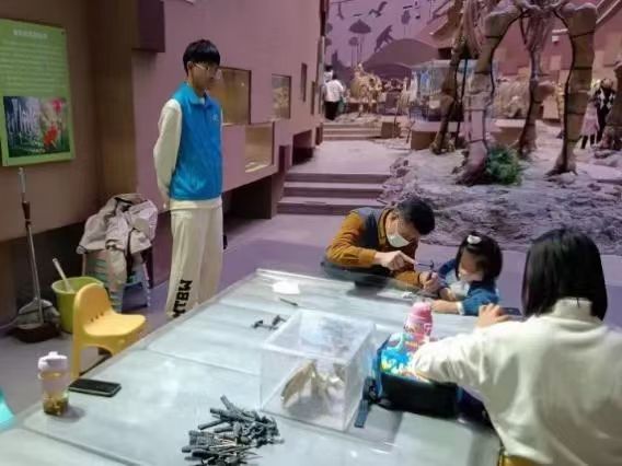 志愿者们分散在自然馆和贝林馆进行志愿服务活动,并采取轮班制度让每个人都体验到不用岗位的工作。每一次轮班后蓝色的身影穿行在陕西自然博物馆,他们耐心地解答这游客们的每一个问题,及时纠正着小朋友们的有些无心但容易对珍稀的动物标本造成伤害的举动,志愿者们积极工作、坚守岗位,以十二分的认真负责的态度圆满完成了本次志愿服务工作,赢得了陕西自然博物馆工作人员的高度评价和赞赏,他们将不怕吃苦,勤劳肯干,无私奉献的精神在博物馆展现地淋漓尽致。