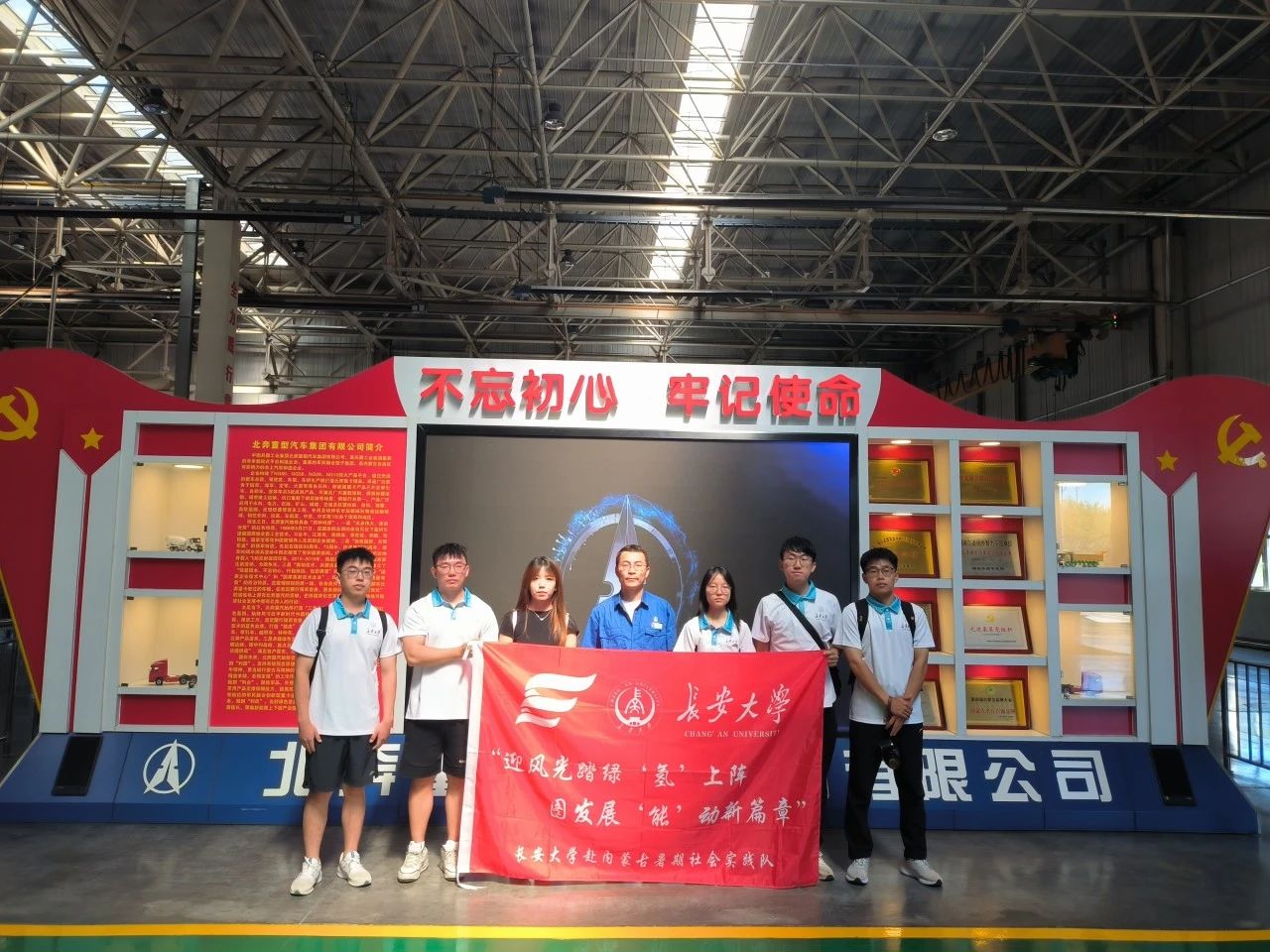 习近平总书记指出:“国有企业是中国特色社会主义的重要物质基础和政治基础,是党执政兴国的重要支柱和依靠力量”。国资国企在建设现代化产业体系、构建新发展格局中发挥了巨大作用,为进一步调研国有企业在推动国家能源现代化改革的推动作用,7月16日,在宿雨心老师的带领下,长安大学SUNBET申搏官方网站赴内蒙古“迎风光踏绿‘氢’上阵·图发展‘能’动新篇章”暑期社会实践队前往中国兵器工业集团北奔重型汽车集团有限公司进行参观调研。