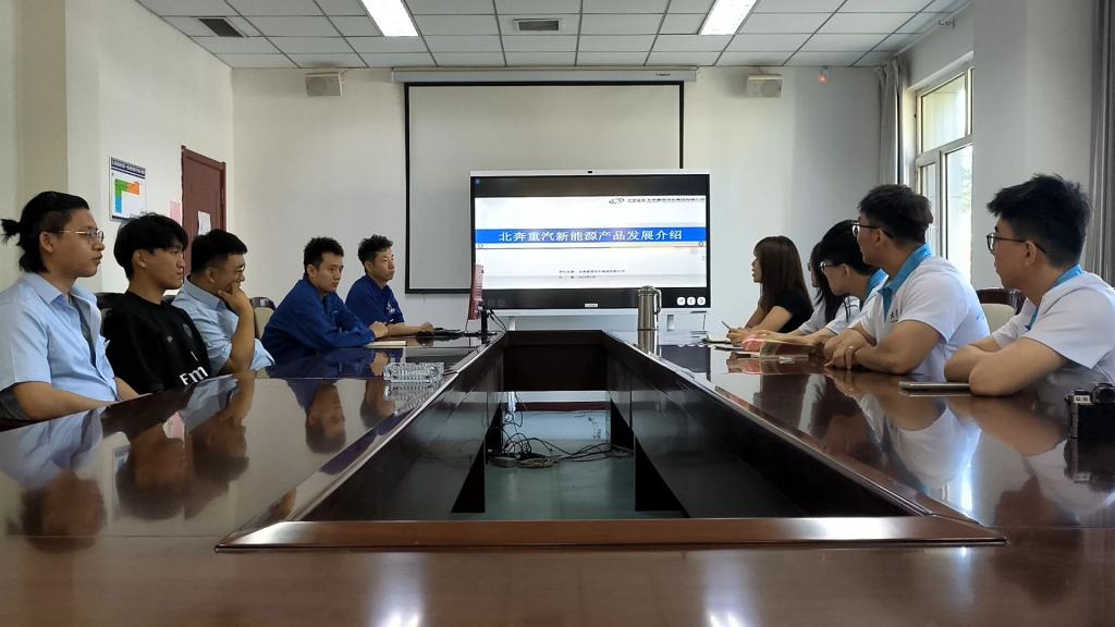 随后,实践队与北奔创新研究院技术人员展开座谈。在创新研究院会议室,新能源总体室刘耀荣对北奔新能源重卡先进技术和广阔布局进行了介绍,实践队与创新研究院团总支优秀团员青年围绕新能源、新材料、先进制造与数字化等领域进行了深入的沟通交流,加深了队员们对现代新能源汽车技术的认识,对新能源重卡的未来光景和发展方向有了进一步的认知。