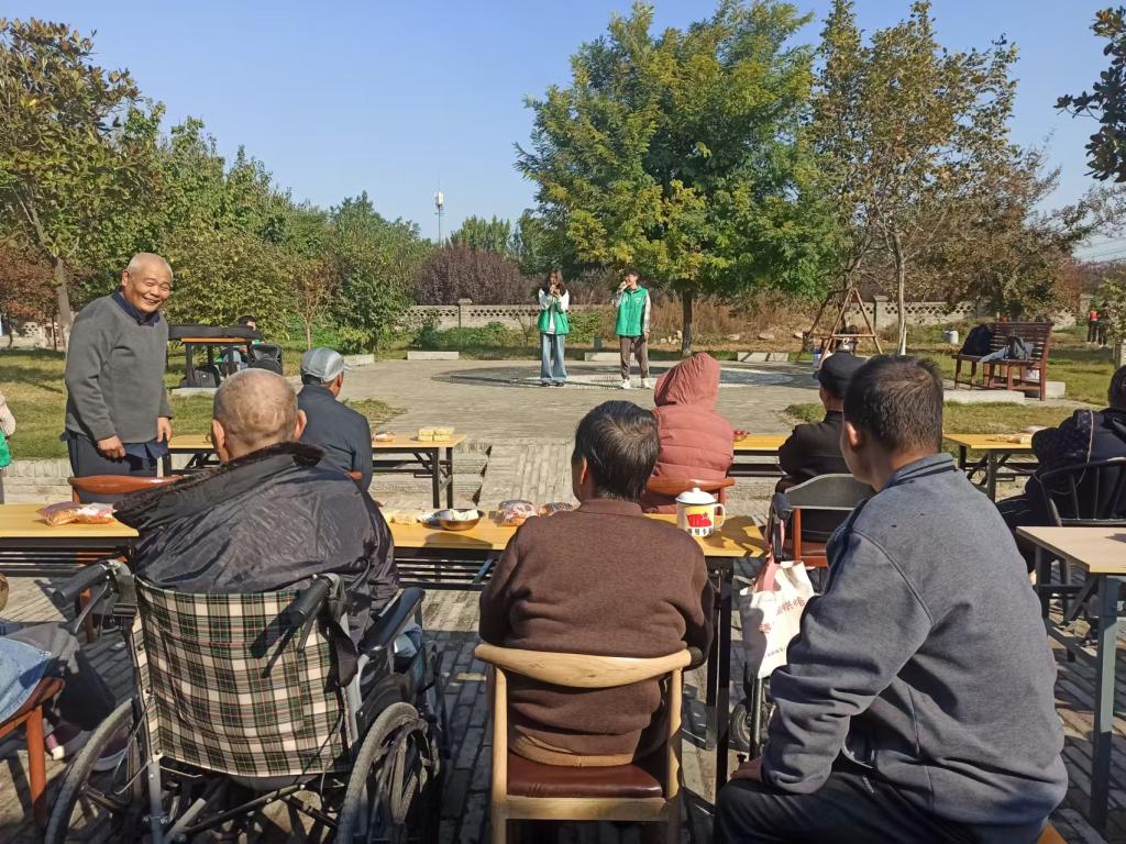 当日早晨,志愿者提前到达现场,帮助工作人员清理院子里的垃圾,让老人的居住环境更加整洁卫生。9:00,活动正式开始,由孙宜强担任主持人,向老人们示范养生手指操八段锦,志愿者们协调老人跟做八段锦,完成简单的锻炼。之后,志愿者为老年人表演了准备已久的节目,随着一首首经典老歌欢快奏响,那熟悉的旋律仿佛带着老人们穿越时光,回到了他们的青春岁月。志愿者们用饱含深情的歌声,表达着对老人们的敬意和祝福。老人们有的轻轻打着节拍,有的跟着哼唱,脸上洋溢着幸福的笑容,与志愿者们共同度过了一段温馨的时光。