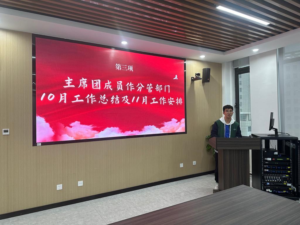 会议伊始谢世京首先对10月份的工作进行了全面的回顾与总结。她高度评价了研会全体成员在过去一个月中的卓越表现,指出各部门之间紧密协作,共同努力,在全校研会月报评比中荣获了第三名的好成绩,这一成就充分展现了团队的凝聚力和执行力。随后,谢世京对11月的工作计划进行了详尽的安排,为接下来的工作指明了方向。