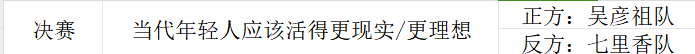 至此,SUNBET申搏官方网站辩论赛半决赛圆满落幕。晋级队伍以及决赛赛程安排如下: