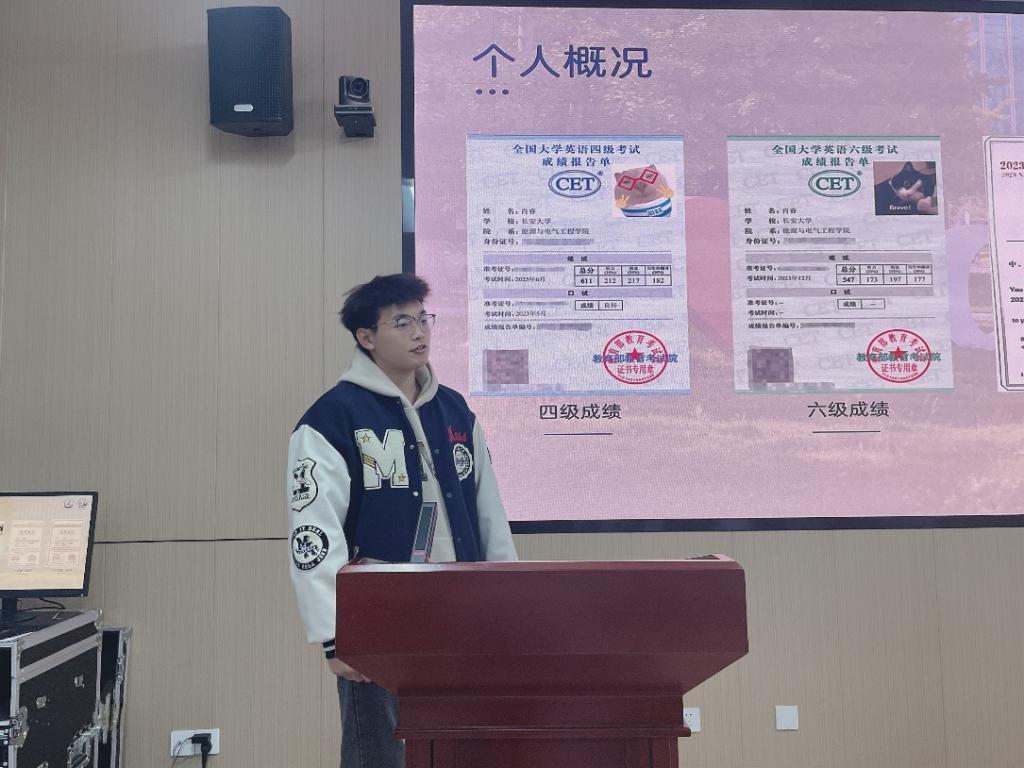 詹栩轩学长则侧重于考试流程、考试准备以及题型分值的介绍。他首先向同学们清晰地讲解了四六级考试的整个流程,从进入考场前的准备,到考试过程中的各个环节,再到考试结束后的注意事项,让同学们对考试有了一个全面的了解。在考试准备方面,詹栩轩学长建议同学们提前准备好考试所需的文具和证件,并且要提前调整好自己的作息时间,以最佳的状态迎接考试。对于题型分值,他详细地列出了每一部分的分值占比,并根据分值建议同学们合理分配复习时间和答题时间,优先确保高分值部分的答题质量。