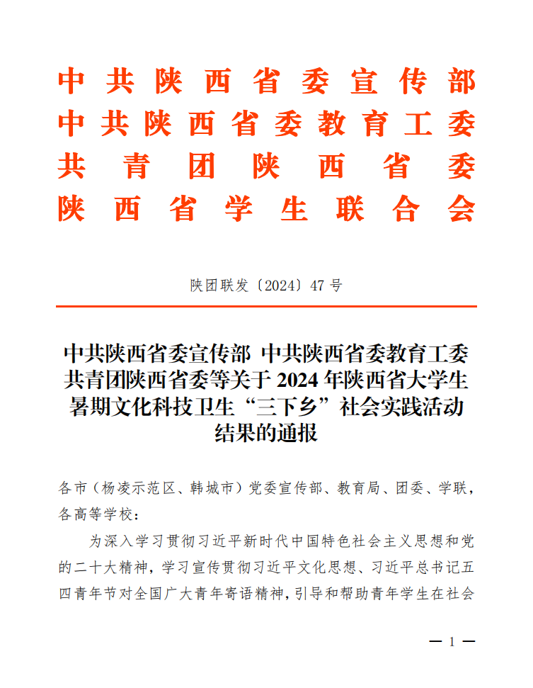 近日,中共陕西省委宣传部、中共陕西省委教育工委、共青团陕西省委等相关部门联合发布了《关于2024年陕西省大学生暑期文化科技卫生“三下乡”社会实践活动结果的通报》,申搏官网赴江西安远“交通强国·未来有我”暑期社会实践队荣获省级优秀团队称号。
