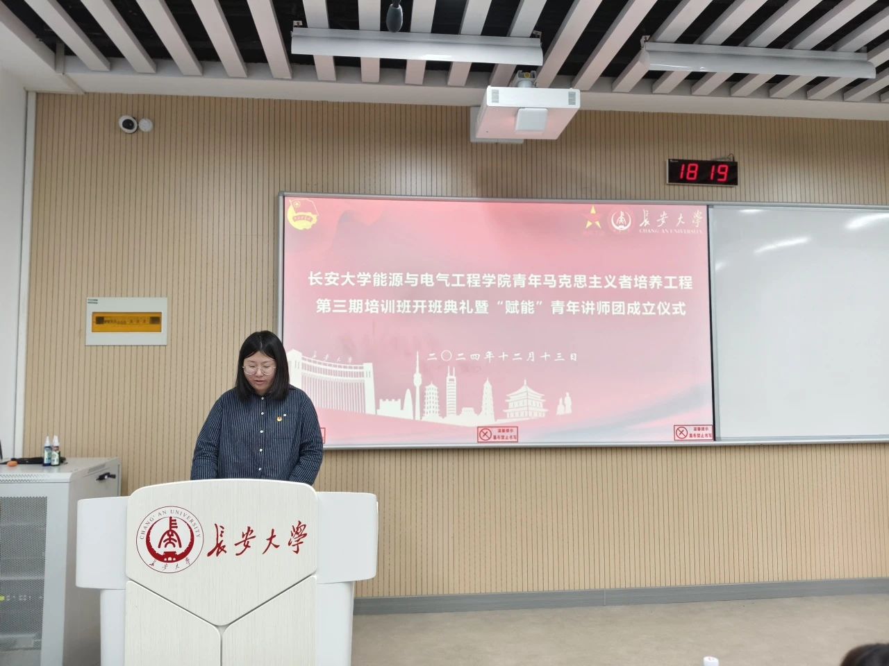 仪式结束后,王艳为本期青马班成员进行首场专题授课。她以《坚定不移听党话、跟党走,奋力书写为中国式现代化挺膺担当的青春篇章》为题,从时代、理论、实践三个维度,围绕青年坚定跟党走的历史脉络,青年为什么始终不渝跟党走,争做有理想、敢担当、能吃苦、肯奋斗的新时代好青年等方面作了讲解,带领学员们回顾百余年党史,讲述青年为党为国做出的贡献,分析了中国共产党和中国青年的特质和关系,勉励大家树立远大理想、敢于挺膺担当、甘于吃苦耐劳、砥砺拼搏奋斗,为学员们后续的青马班学习提供了深刻的理论指导和丰富的实践指引。