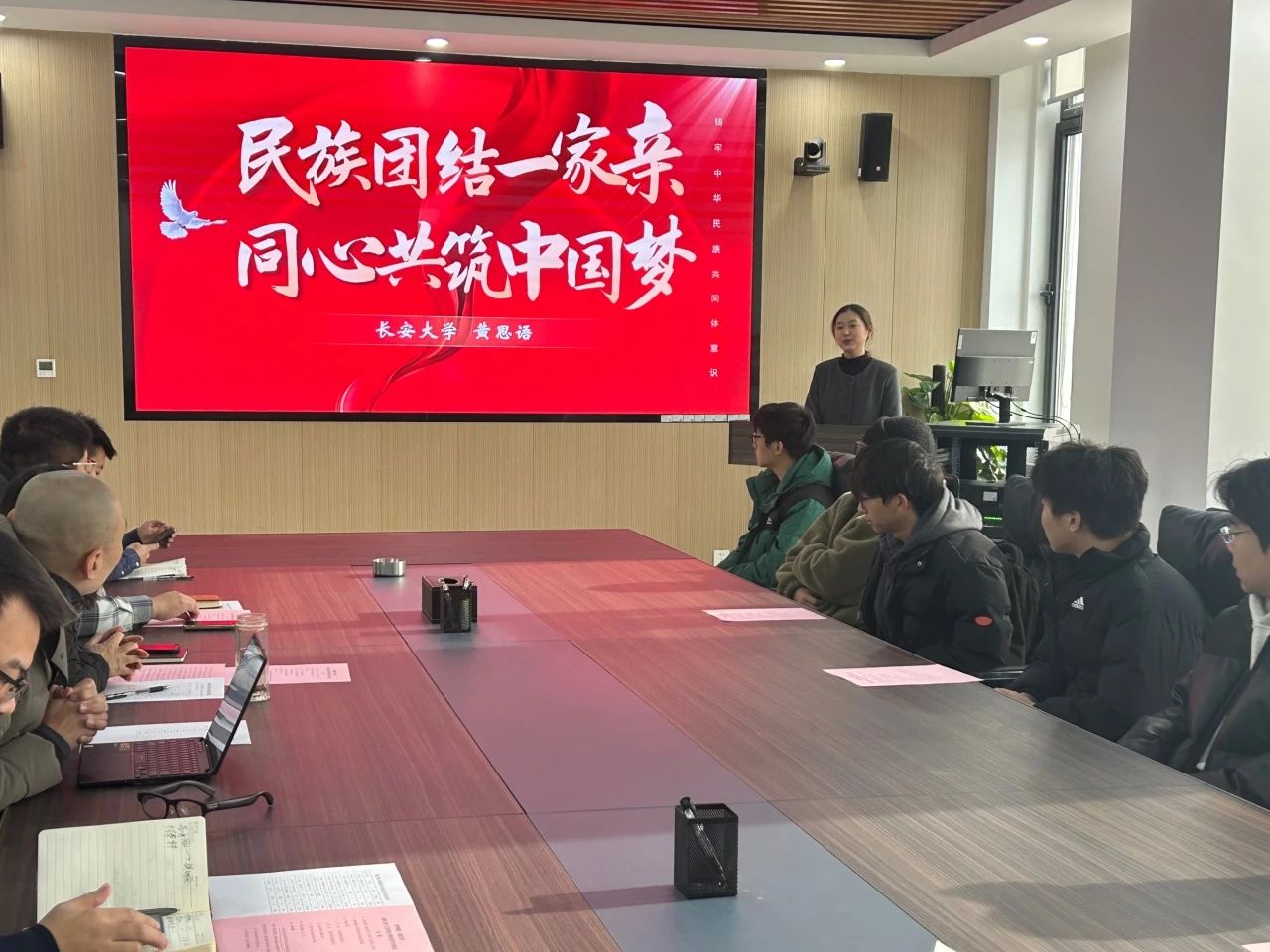本次座谈会还邀请陕西省大学生铸牢中华民族共同体意识主题微宣讲大赛一等奖获得者、陕西省高校大学生铸牢中华民族共同体意识宣讲团成员、申搏官网2023级本科生黄思语作了题为《民族团结一家亲,同心共筑中国梦》的主题宣讲。
