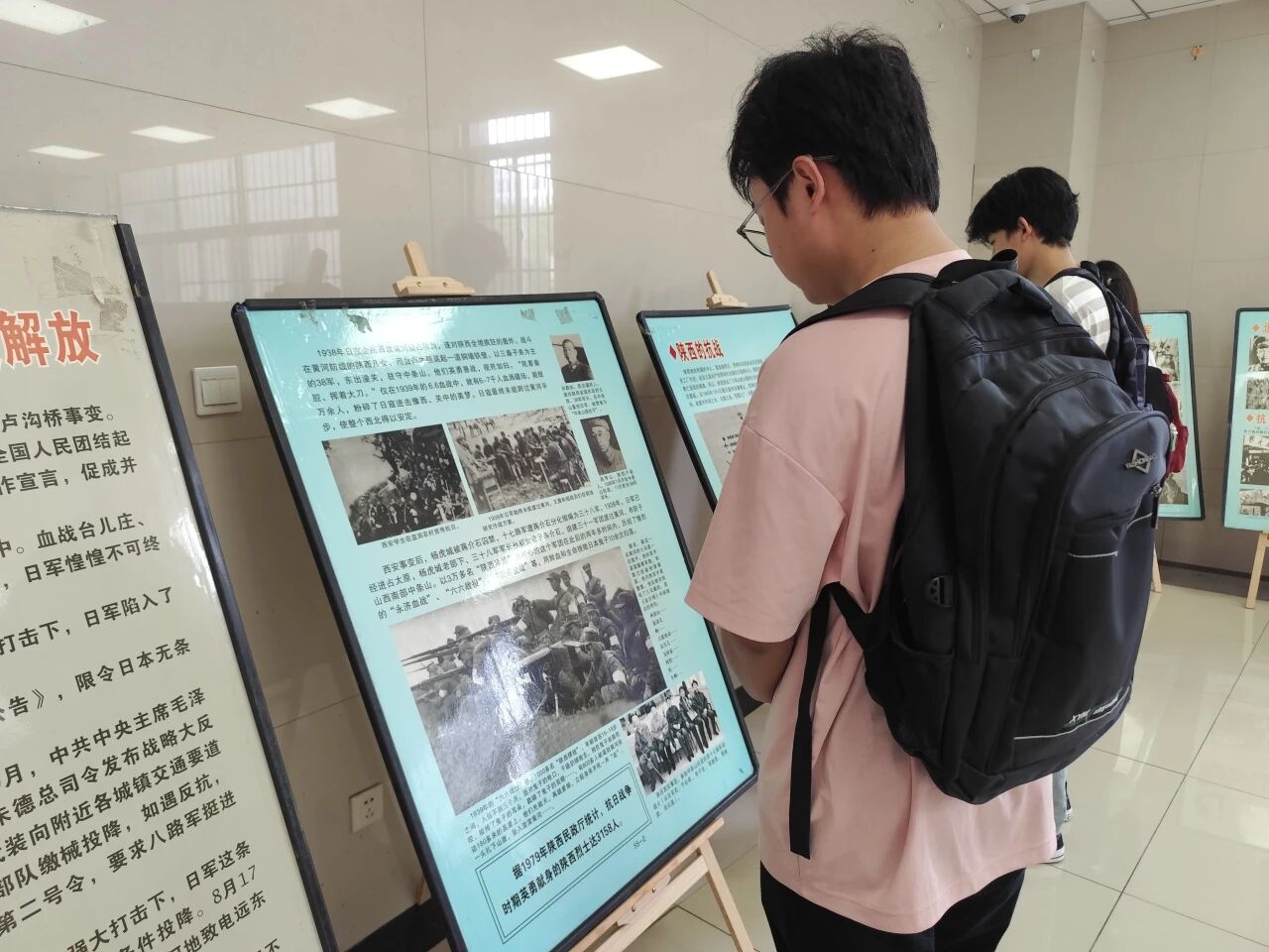 本次展览以大量珍贵史料为依托,通过众多重要事件的相关图片和图书,全景讲述了中国人民伟大的十四年抗日战争历程。展区内,“九一八事变”“淞沪会战” 等重大抗战事件的珍贵图片引人驻足,震撼人心。一幅幅史料、一段段文字,生动还原了中国人民在抗日战争中浴血奋战、不屈不挠的壮阔场景,直观展现了革命先烈为民族独立与人民解放舍生取义的崇高气节,深刻昭示着中华民族不畏强暴、血战到底的英雄气概。