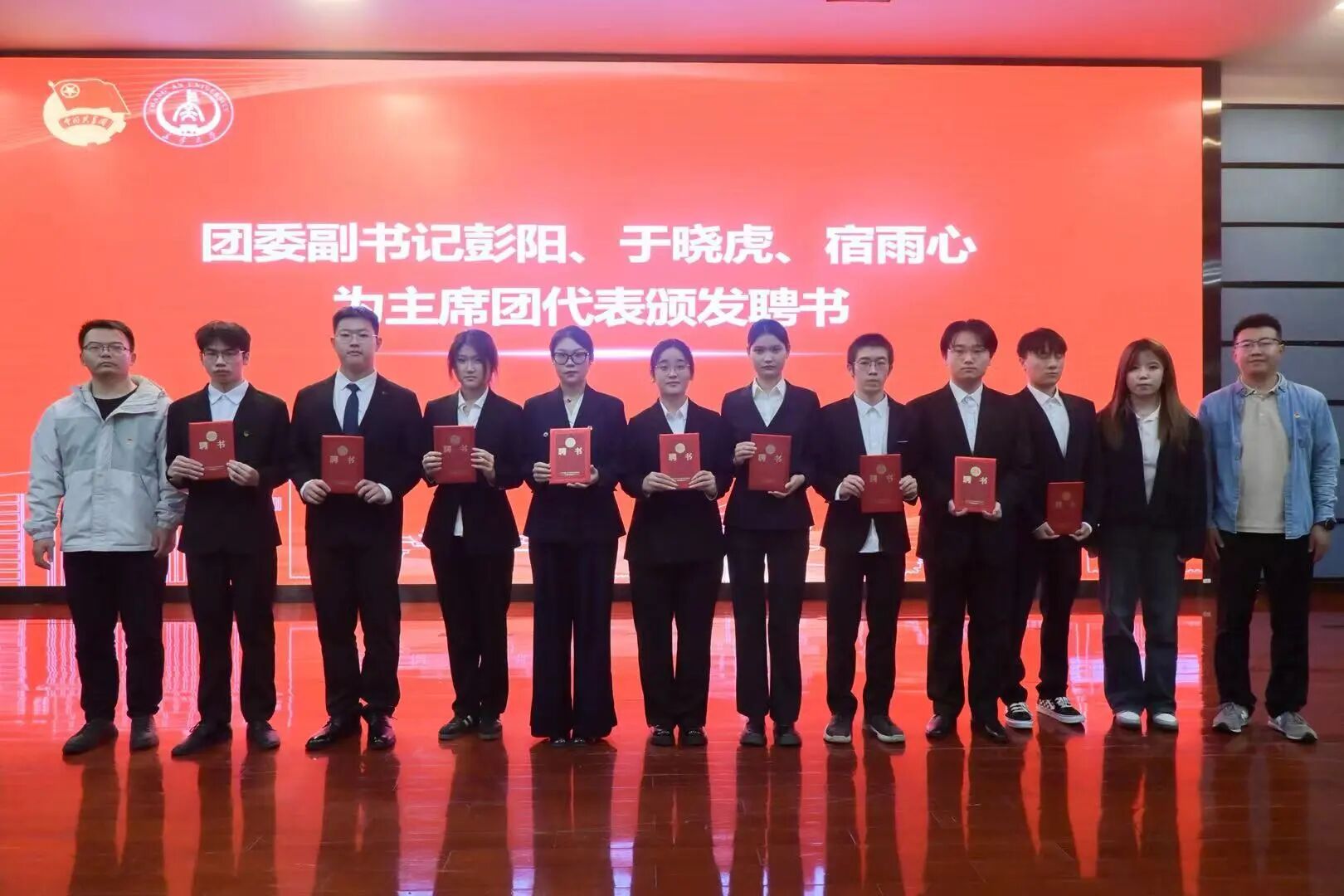 团委副书记彭阳、于晓虎、宿雨心为主席团成员代表颁发聘书。