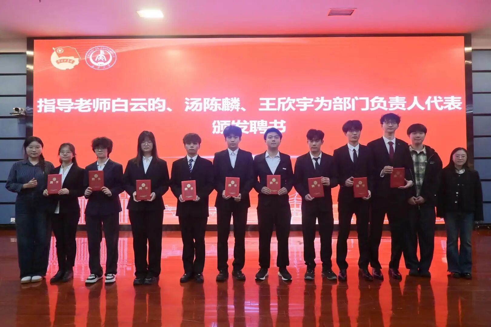 指导老师白云昀、汤陈麟、王欣宇为部门负责人代表颁发聘书。