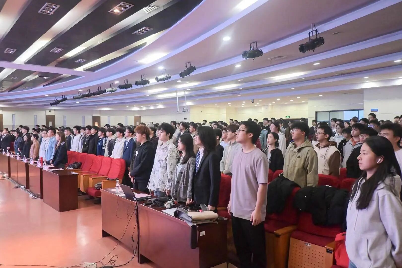 大会在庄重的国歌声中拉开帷幕。