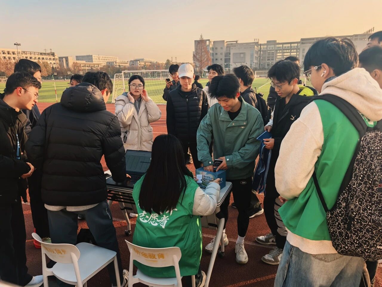 从清晨七点半开始,能电青志队的志愿者们便已全员到岗,有条不紊地开展物资分发、队伍引导、赛前检录等工作。他们身着统一志愿服装,精神饱满、笑容温暖,成为赛场边最动人的风景。在检录点,他们认真工作,为选手提供及时帮助;在挑战区,志愿者耐心讲解规则、维护秩序;在接力区,他们精准计时、协助交接。无论是引导参赛者完成“S型绕杆跑”,还是协助拼图任务、组织投壶挑战,志愿者们始终以专业、热情的服务,保障了赛事的有序进行,赢得了选手和老师的一致赞誉。