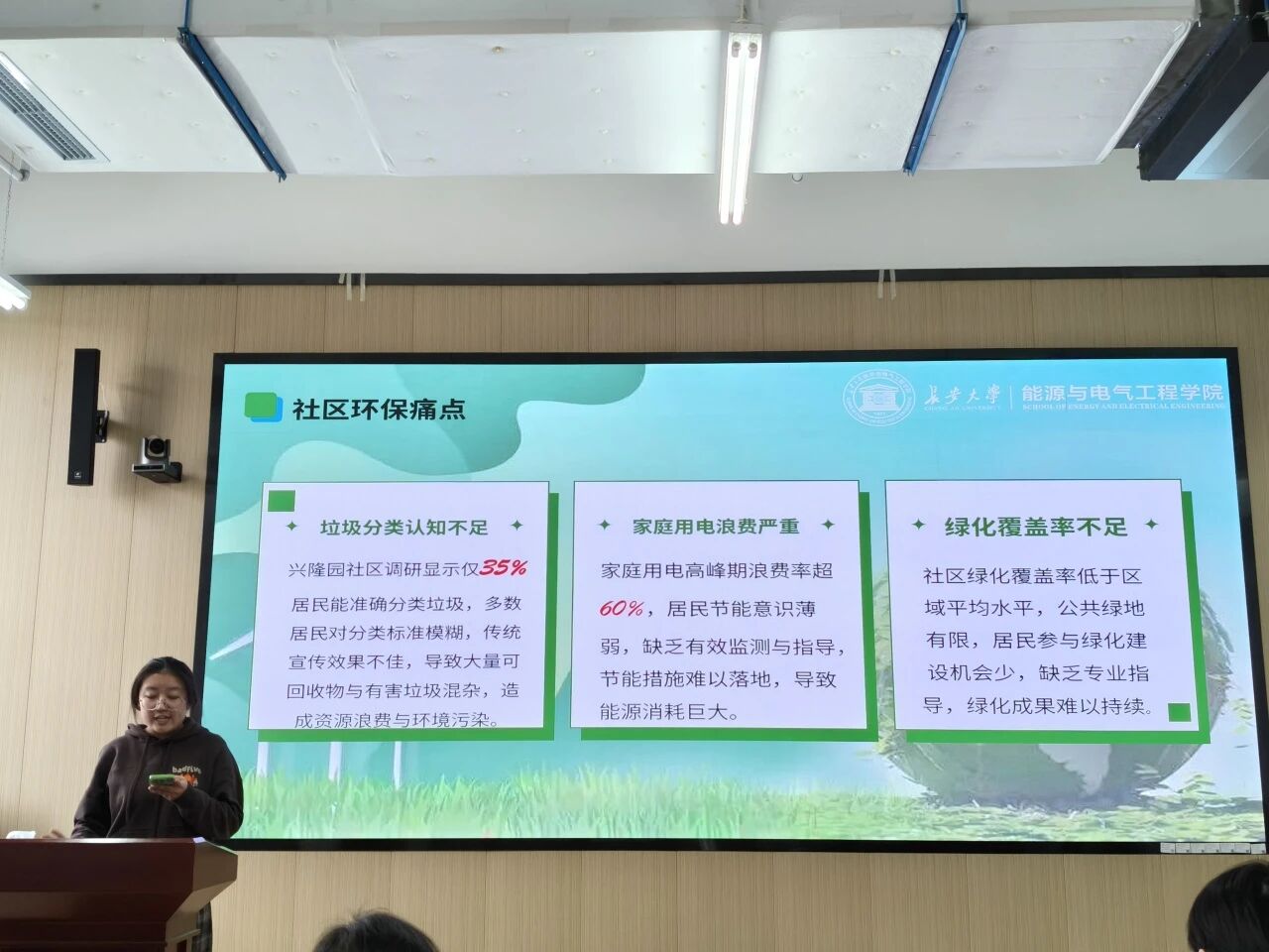 姚惠珊向大家分享了“‘碳’索未来”这一志愿服务项目,针对社区居民垃圾分类准确率比较低这一现象,青志队构建了“认真唤醒场景体验”和“行为转化”的闭环服务模式。凭借其显著的成效,于上学期获得了长安大学第一届志愿服务大赛的金奖,并于本学期代表长安大学被推荐至陕西省第二届青年志愿服务项目大赛参赛。用鲜活的志愿服务项目感染更多志同道合的青年人投身于志愿服务的广阔舞台。