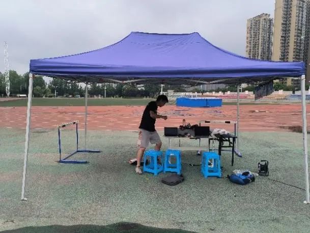 其中我们遭遇了很大的挑战,首先是室外环境条件艰苦,工作效率低下,我和队友在操场上搭建起了一个“实验室”,并想尽各种办法引来电源,这为我们后期的调试带来了极大的便利;其次是出现了很多难以解决的问题,但是通过大量的调试,问题基本上都得到了解决;距离比赛的时间越来越近,天气又与我们开起了玩笑,赛前几天天降暴雨,为了充分利用时间,在下雨时我们只好在室内修改程序、调试硬件,雨停了我们马上下楼清理操场并开始调试。