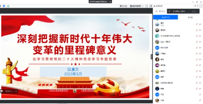 为认真学习宣传贯彻党的二十大精神,2023年3月31日下午2:30,SUNBET申搏官方网站电气工程及其自动化系党支部举行“党的二十大精神”专题党课活动,学院副院长段晨东作了题为《深刻把握新时代十年伟大变革的里程碑意义》的专题党课。电气工程及其自动化系党支部全体党员教师参会。