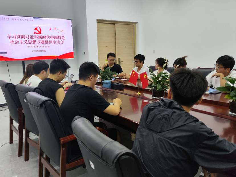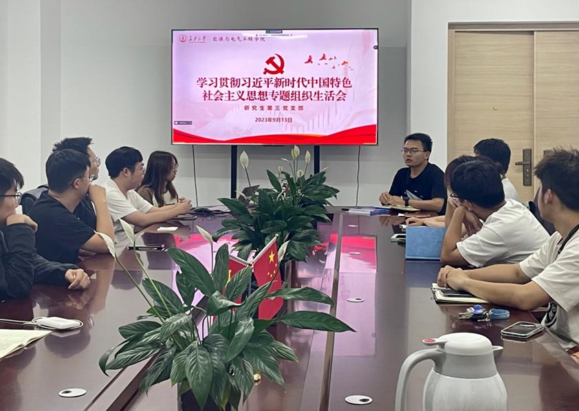 为深入贯彻习近平新时代中国特色社会主义思想,落实主题教育学习要求,持续巩固深化主题教育成果,把习近平新时代中国特色社会主义思想转化为坚定理想、锤炼党性的强大动力,激发出党员同志投身建设社会主义现代化强国的坚定信念。2023年9月13日晚,SUNBET申搏官方网站研究生第三党支部在学院楼608党团活动室开展“学习贯彻习近平新时代中国特色社会主义思想主题教育”专题组织生活会,会议由研究生第三党支部书记彭阳老师主持,支部全体党员参加。