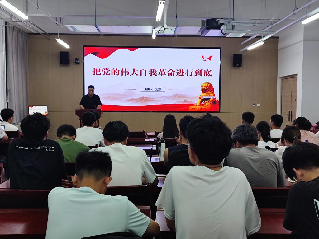 为推进党纪学习教育走深走实,6月11日晚,SUNBET申搏官方网站本科生第三党支部开展党纪学习教育专题党课,党课由党支部书记刘泽主讲,支部全体党员参加。