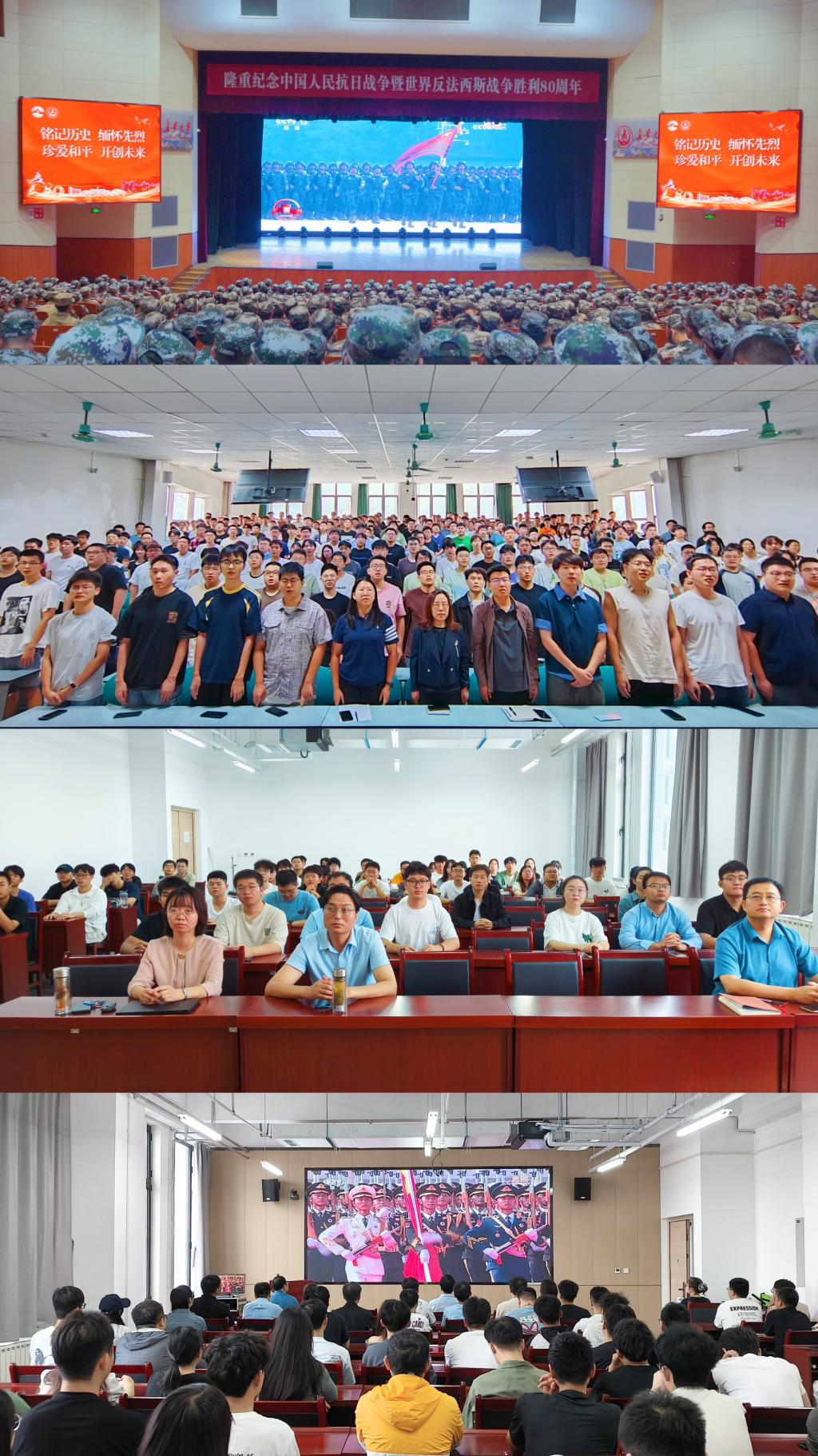 9月3日上午,纪念中国人民抗日战争暨世界反法西斯战争胜利80周年大会在北京天安门广场隆重举行。SUNBET申搏官方网站组织师生代表在北校区长安文化艺术中心大礼堂、扶轮大厦612报告厅、WT1101教室集中观看大会直播及阅兵仪式,学院党政领导深入各会场,和师生共同上好这堂兼具历史厚度与爱国温度的“大思政课”。